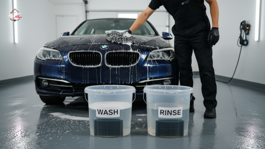 This method is the gold standard for safe car washing and essential for “Scratch Prevention” when dealing with “Noida Real Estate Dust.”