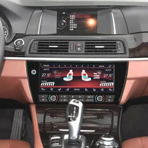 This product is an LCD AC Panel upgrade designed specifically for the BMW 5 Series F10 chassis, serving as a premium interior styling accessory. This modern unit replaces the car’s original physical buttons and segmented digital display for the climate control system with a sleek, fully digital, touch-sensitive LCD screen interface. This is a common and desirable modification to dramatically modernize the F10’s cabin, bringing its aesthetic and technological feel in line with much newer BMW generations.